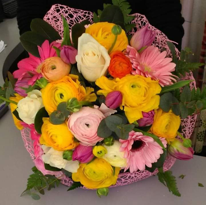 Bouquet di ranuncoli,tulipani e gerbere colori misti